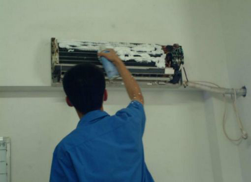 | 晋州空调维修师傅给晋州用户上门维修清洗空调。 |